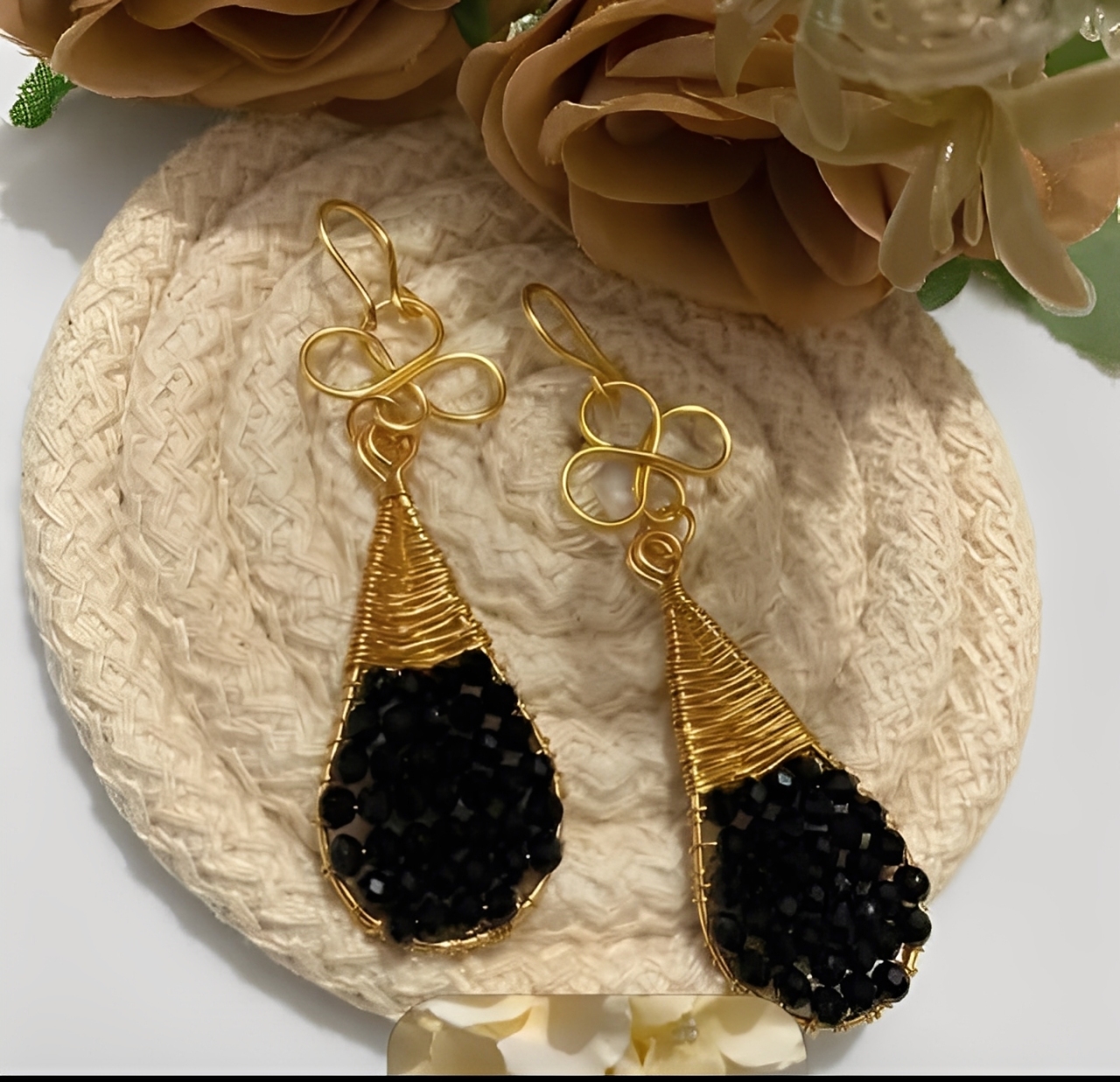 Aretes en alambrismo con pedrería de murano negra