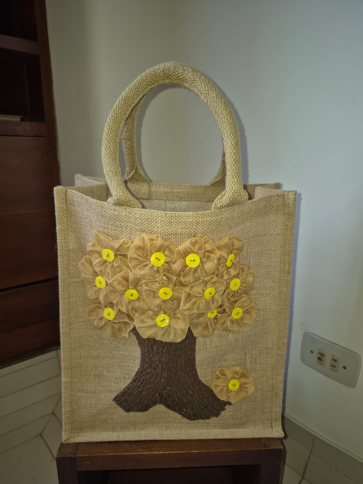 Bolso en Yute Tejido y Decorado a Mano