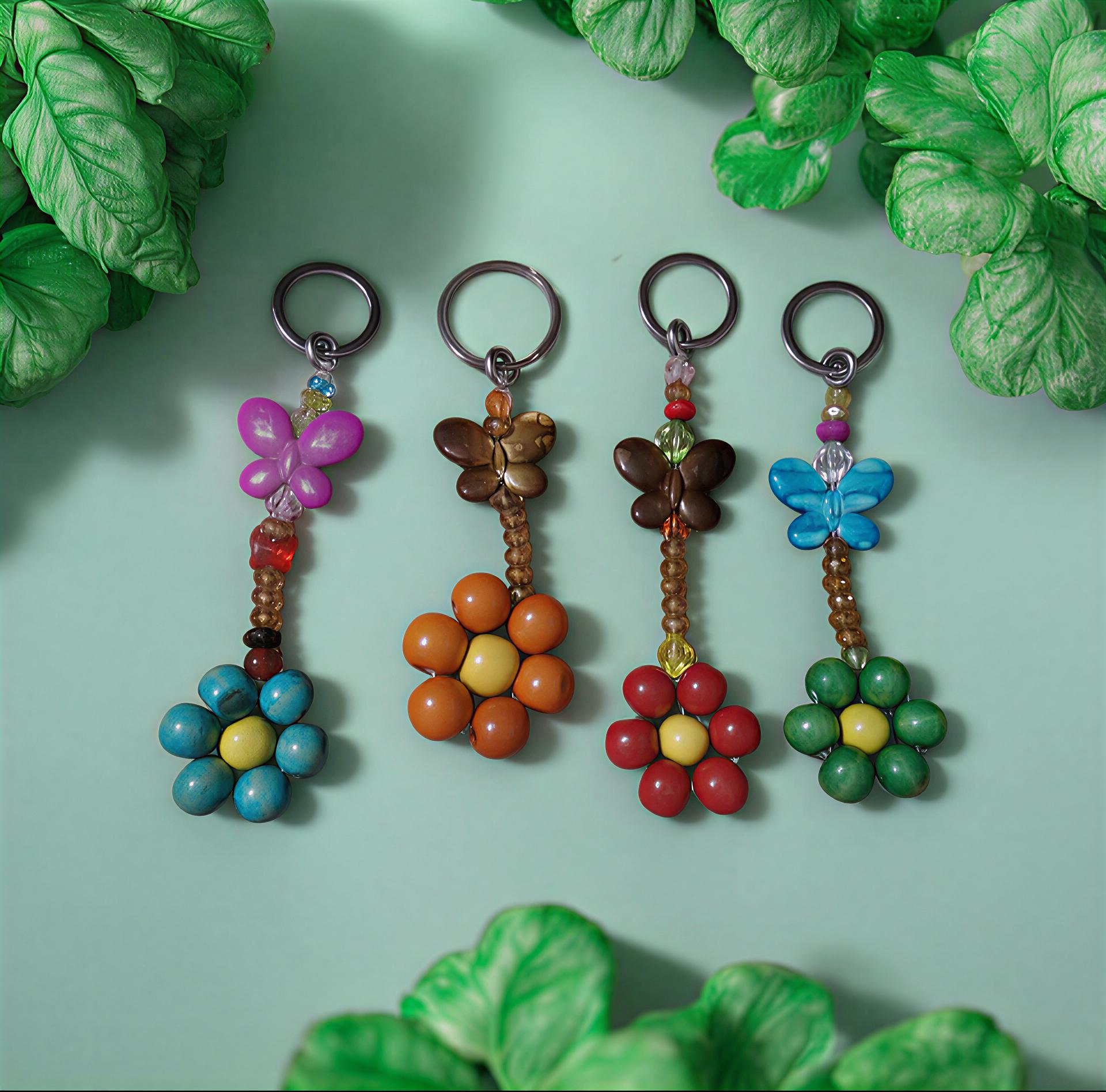Llavero artesanal elaborado con pepas de madera y acrílico, tejido a mano con materiales resistentes para brindar durabilidad y ligereza. Su acabado colorido y detallado lo convierte en un accesorio práctico y decorativo, ideal para acompañar llaves, bolsos o mochilas. Una pieza única hecha con dedicación, perfecta para uso diario o como un detalle especial para regalar.